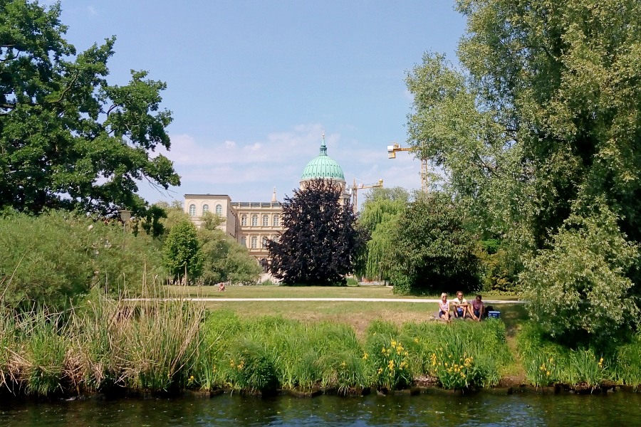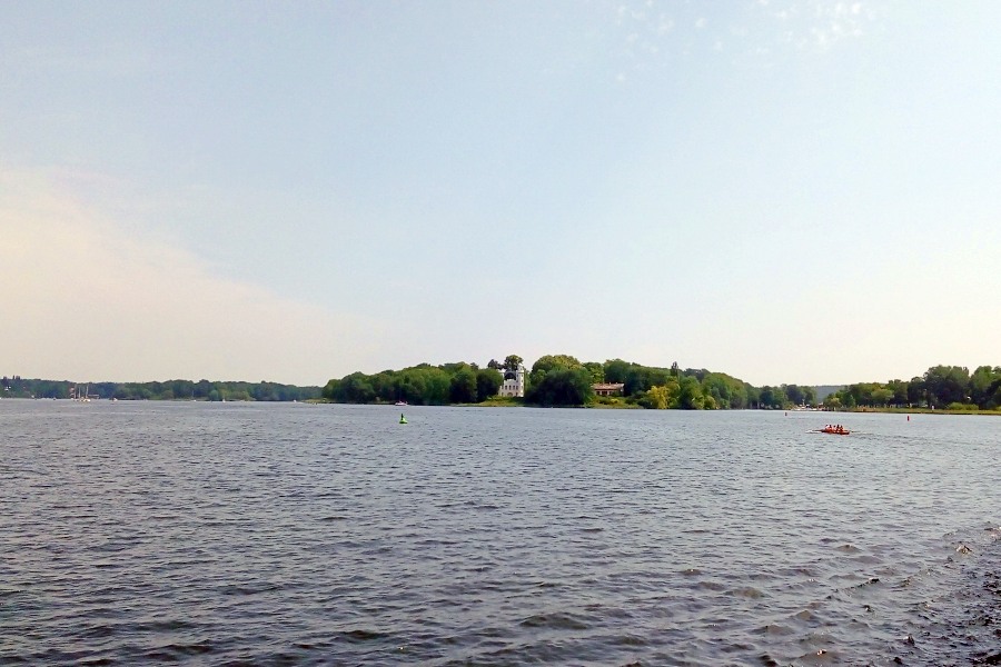 Potsdam wird überall von der Havel umarmt. Mit dem Sacrow-Paretzer Kanal ist die Stadt sogar zur Insel geworden und kann mit dem Schiff umrundet werden. Der Reiz der Havelseen hatte es schon den preußischen Regenten angetan, und sie richteten viele ihrer Schlösser und Parks nach der Flusslandschaft aus. Das Schloss Sanssouci gehört zwar nicht dazu, doch selbst dort sind die Teiche im Park mit der Havel verbunden und die Fontänen der Parkpromenade werden von einem als Moschee getarnten Pumpenhaus an der Neustädter Havelbucht gespeist. Doch genug der Vorrede. Das Schiff legt im Hafen neben dem ehemaligen Stadtschloss ab und unterquert die Lange Brücke Richtung Freundschaftsinsel.