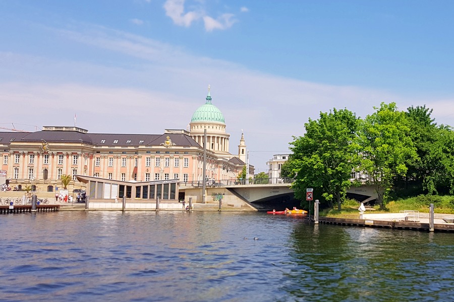 Über die Freundschaftsinsel hinweg sind das Palais Barberini und die Kuppel der Nikolaikirche am Alten Markt zu sehen. Die Nuthemündung zieht vorbei, gegenüber erhebt sich der Neubau am ehemaligen Standort der im Krieg zerstörten Heilig-Geist-Kirche. Gleich nebenan der Beginn des ehemaligen Stadtkanals, der einst zugeschüttet wurde und nun wieder erstehen soll. Alles sehenswerte Stationen, doch um euch nicht mit einer Bilderflut zu langweilen, wird es nicht von jeder Station ein Foto geben. Hier muss es genügen, euch mit ein paar Beispielen Lust darauf zu machen, die Runde an einem schönen Tag selbst einmal zu drehen.