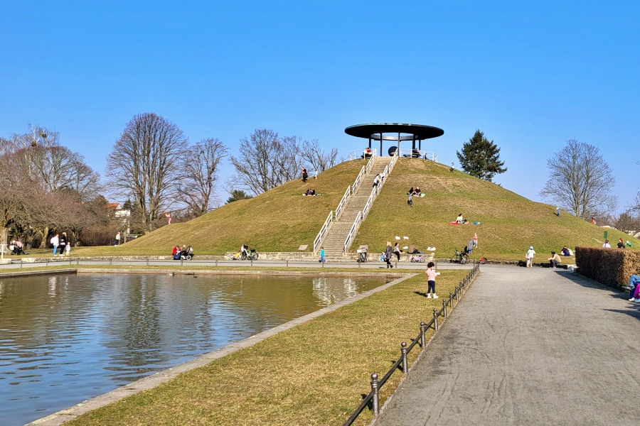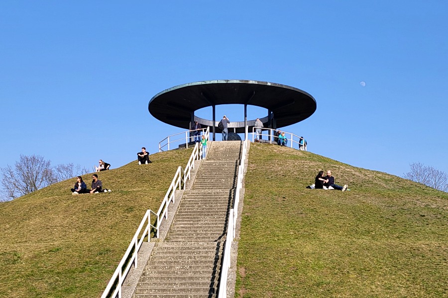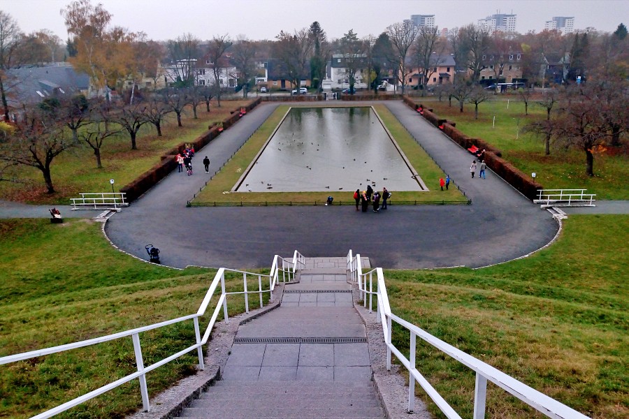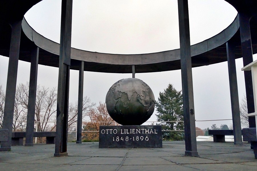 November 2021 | Der Lilienthalpark befindet sich ganz im Süden von Berlin-Lichterfelde, nahe der Stadtgrenze auf dem Gelände einer ehemaligen Tongrube. Davon ist heute nichts mehr zu sehen. Otto Lilienthal hatte hier aus dem Abraum der Ziegelei Heinersdorf seinen Fliegeberg aufschütten lassen. Der Hügel war 15 Meter hoch und damals noch nicht von Bauten umgeben, sodass Lilienthal hier ungestört mit seinen Fluggeräten experimentieren konnte. Schon bald wurden aber höhere Startplätze für längere Flüge nötig und Lilienthal verlegte seine Versuche nach Stölln, wo er 1896 abstürzte und sich tödlich verletzte. Bereits kurz nach seinem Tod wurde begonnen, das Areal um seinen ersten Fliegeberg in einen Gedenkpark umzugestalten.
