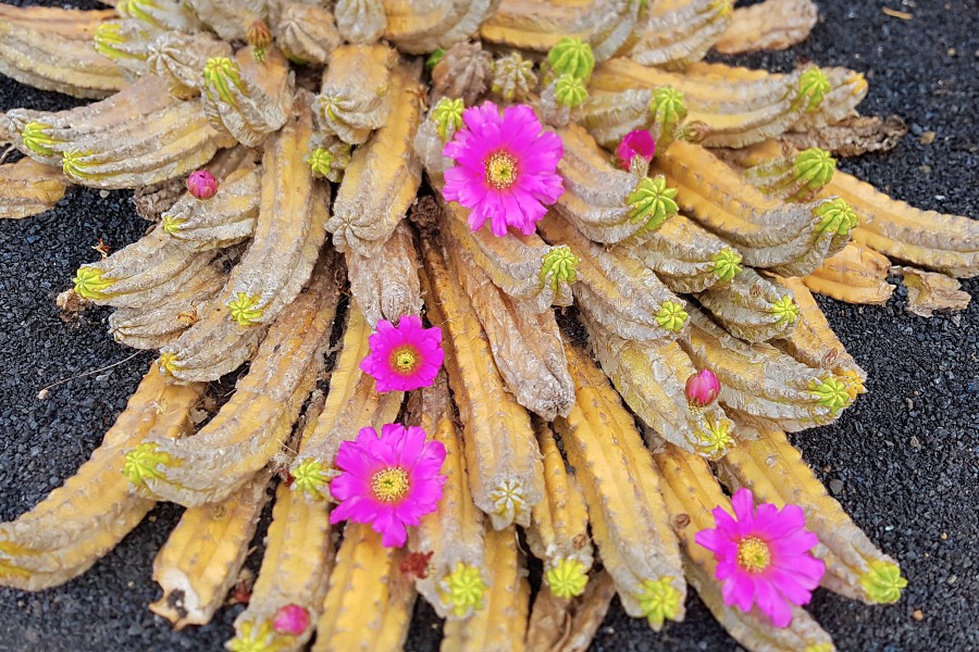 Juni 2018 | Lanzarote ist sehr einprägsam strukturiert. Fast scheint es, die Insel sei für ihre Besucher in thematische Regionen eingeteilt. Alles hat seinen festen Platz, meist gesellt sich ein Dorf dazu. Entlang der Ostküste, mit der Inselhauptstadt Arrecife als Mittelpunkt, bestimmt der Tourismus das Bild. Ab Yaiza beginnt nach Südwesten hin die vulkanische Einöde der Feuerberge. Ganz im Süden sind die Papagayo-Buchten mit ihren seichten Sandstränden. Im Zentrum der Insel geht es um Wein, im Norden stehen vulkanische Höhlen und Grotten im Mittelpunkt. Und im Nordosten liegt Guatiza, hier wachsen Kakteen und die werden wir uns heute anschauen.