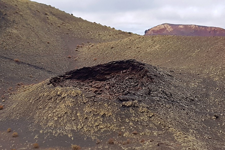 Juni 2018 | Die Feuerberge heißen auf spanisch „Montañas del Fuego“. Sie stehen heute auf unserem Programm und sind, von ihrer Entstehungszeit her, die jüngsten Vulkane der Insel. Bei den heftigen Eruptionen vor knapp 300 Jahren öffneten sich 32 neue Krater. Das Kerngebiet bildet heute den Nationalpark Timanfaya.