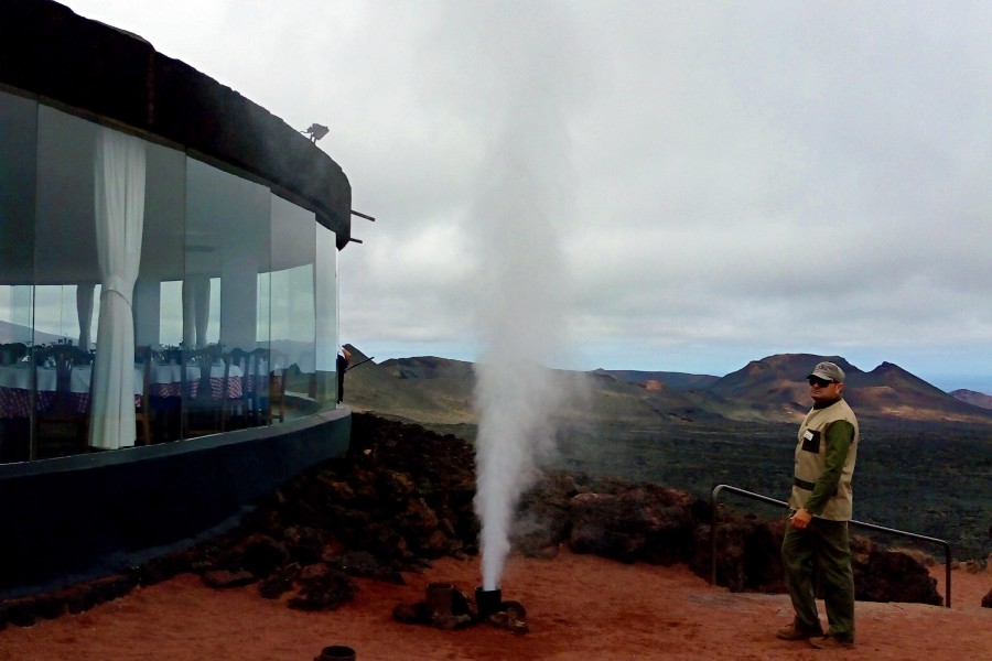 Ein Mensch ist klein angesichts solcher Naturgewalten. Gefühle der Hilflosigkeit und Ängste steigen in ihm auf, aber dann klettert er aus dem Bus, bummelt durch den Souvenirladen oder bestellt sich im Restaurant „El Diablo“ ein halbes Hähnchen, das auf einem Grillrost über einem Kamin mit vulkanischer Hitze aus der Tiefe gegart wurde.