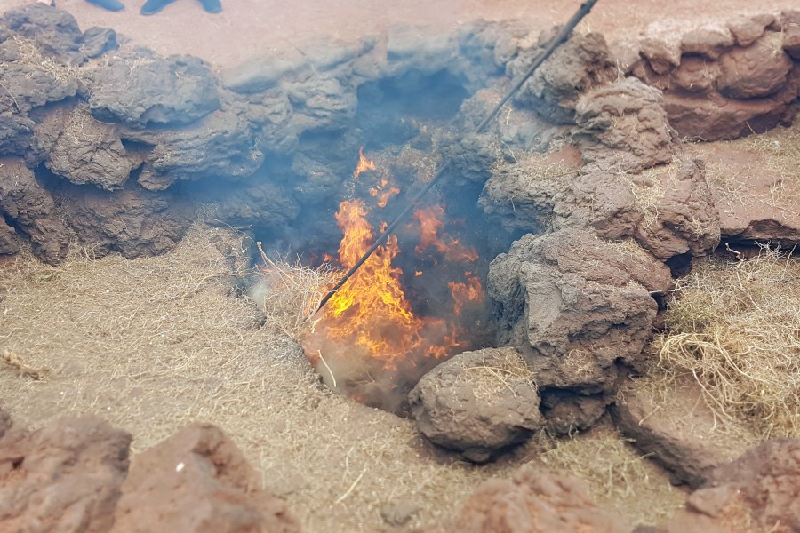 Restaurant und Besucherzentrum wurden direkt auf einen Vulkankegel gebaut. Die Gluthitze drängt über all nach oben. Sie steigt unter dem Grillrost empor und erwärmt sogar das krümelige Basaltgranulat zu unseren Füßen. Ein Guide ermuntert uns, es mit den Händen zu greifen, und freut sich über unsere überraschten Gesichter. Mit einer Forke, die für den nötigen Abstand sorgt, hält er Heu über ein Erdloch und es geht unmittelbar in lodernde Flammen. Besonders spektakulär: In ein vergrabenes Stahlrohr wird Wasser gegossen, das, nach Sekunden nur, auf eine Umgebungstemperatur von über 400 °C trifft und explosionsartig verdampft. Eine Fontäne aus Dampf schießt in die Höhe und lässt die Zuschauer ehrfurchtsvoll einen Schritt zurückweichen. Wir schauen uns diese Attraktion mehrfach an und machen uns dann auf den Weg zum Nationalparkzentrum.