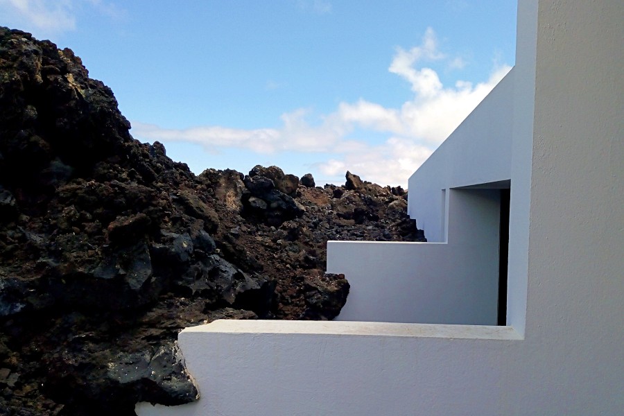 Das Nationalparkzentrum liegt kurz vor dem Dorf Mancha Blanca in Sichtweite des Vulkans Caldera Blanca. Die weißen Mauern und das schwarze Basaltgestein grenzen unmittelbar aneinander. Hölzerne Stege führen auf das Lavafeld und wir können uns anschauen, wie auf dem tot wirkenden Areal zaghaft die ersten Moose und Farne das Leben zurückbringen. Im Gebäude gibt es eine spannende Ausstellung über den Vulkanismus im Allgemeinen und auf Lanzarote im Besonderen. Ihr Höhepunkt ist die Simulation eines Vulkanausbruchs. Die einzelnen Phasen einer Eruption werden in einem präparierten Raum am Modell erlebbar gemacht – mit Lichteffekten, Geräuschen und bebendem Boden. Als wir dazukommen, beginnt die Multimedia-Show gerade in ihrer französischen Variante, doch das Grollen des Berges, das Brodeln im Krater und das Fließen der Lava bedürfen keiner Sprache, um verständlich zu sein.